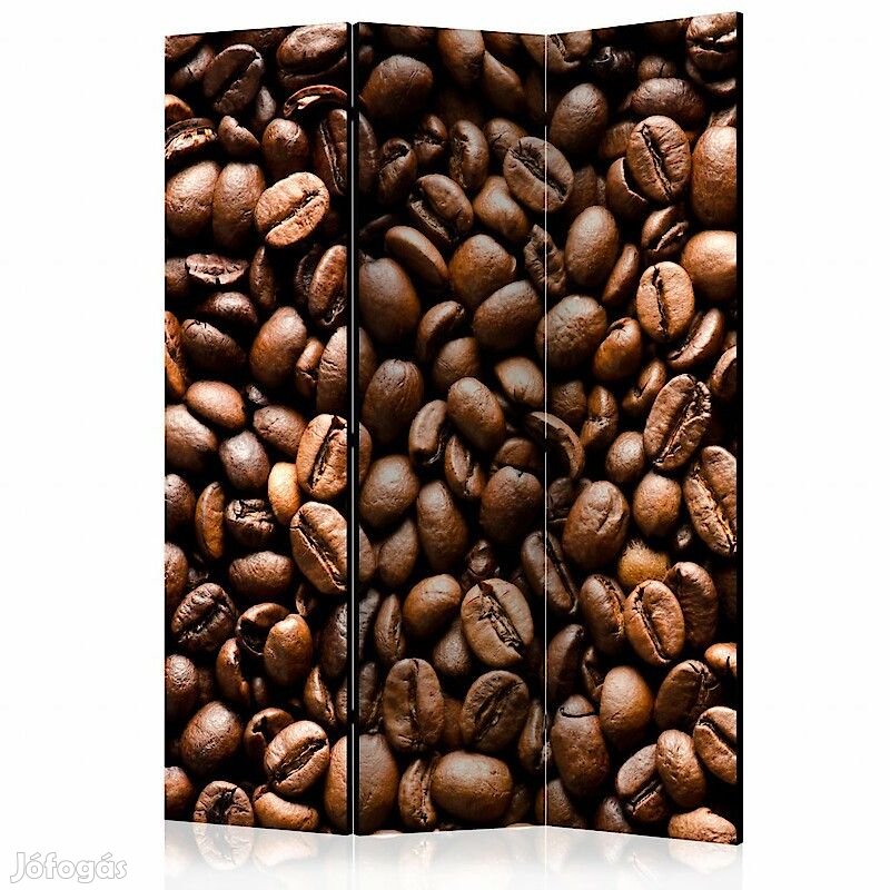 A "Pörkölt kávészemek" díszítő paraván egy kivételes része a modern beltereknek. A 3-részes, fából készült és kétoldalúan nyomtatott paraván nemcsak diszkréten elválasztja a teret, de hihetetlen megjelenést is biztosít a beltérnek. A tökéletes kivitelezés és a Full HD minőségű eredeti motívumok azt eredményezik, hogy a szobaparaván mindegyik beltér számára utánozhatatlan csábot biztosít. A beltéri díszparaván minden bizonnyal nagyszerű ötlet a helyiség díszítésére. Érdemes megemlíteni a praktikus alkalmazásukat is - a szobaparavánok használhatók pl. a kiteregetett ruhák eltakarására. Nagyon eredeti díszítőelem, mely mind lakásban, mind irodákban egyaránt használható, pl: fodrászszalonban, orvosi rendelőben vagy akár könyvelői irodában is.