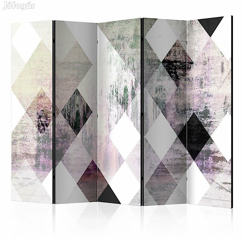 A "Rombikus sakktábla II" díszítő paraván egy kivételes része a modern beltereknek. A 5-részes, fából készült és kétoldalúan nyomtatott paraván nemcsak diszkréten elválasztja a teret, de hihetetlen megjelenést is biztosít a beltérnek. A tökéletes kivitelezés és a Full HD minőségű eredeti motívumok azt eredményezik, hogy a szobaparaván mindegyik beltér számára utánozhatatlan csábot biztosít. A beltéri díszparaván minden bizonnyal nagyszerű ötlet a helyiség díszítésére. Érdemes megemlíteni a praktikus alkalmazásukat is - a szobaparavánok használhatók pl. a kiteregetett ruhák eltakarására. Nagyon eredeti díszítőelem, mely mind lakásban, mind irodákban egyaránt használható, pl: fodrászszalonban, orvosi rendelőben vagy akár könyvelői irodában is.