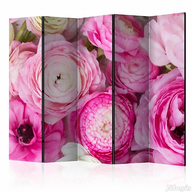 Az "Rózsaszín boglárkák II" díszítő paraván egy kivételes része a modern beltereknek. A 5-részes, fából készült és kétoldalúan nyomtatott paraván nemcsak diszkréten elválasztja a teret, de hihetetlen megjelenést is biztosít a beltérnek. A tökéletes kivitelezés és a Full HD minőségű eredeti motívumok azt eredményezik, hogy a szobaparaván mindegyik beltér számára utánozhatatlan csábot biztosít. A beltéri díszparaván minden bizonnyal nagyszerű ötlet a helyiség díszítésére. Érdemes megemlíteni a praktikus alkalmazásukat is - a szobaparavánok használhatók pl. a kiteregetett ruhák eltakarására. Nagyon eredeti díszítőelem, mely mind lakásban, mind irodákban egyaránt használható, pl: fodrászszalonban, orvosi rendelőben vagy akár könyvelői irodában is.