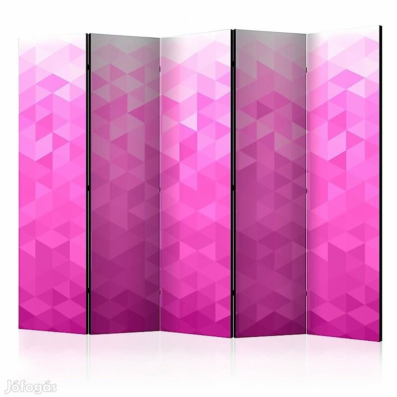 A "Rózsaszín kockák II" díszítő paraván egy kivételes része a modern beltereknek. A 5-részes, fából készült és kétoldalúan nyomtatott paraván nemcsak diszkréten elválasztja a teret, de hihetetlen megjelenést is biztosít a beltérnek. A tökéletes kivitelezés és a Full HD minőségű eredeti motívumok azt eredményezik, hogy a szobaparaván mindegyik beltér számára utánozhatatlan csábot biztosít. A beltéri díszparaván minden bizonnyal nagyszerű ötlet a helyiség díszítésére. Érdemes megemlíteni a praktikus alkalmazásukat is - a szobaparavánok használhatók pl. a kiteregetett ruhák eltakarására. Nagyon eredeti díszítőelem, mely mind lakásban, mind irodákban egyaránt használható, pl: fodrászszalonban, orvosi rendelőben vagy akár könyvelői irodában is.