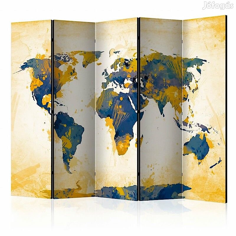 Paraván - Sárga és kék mintás világtérkép II