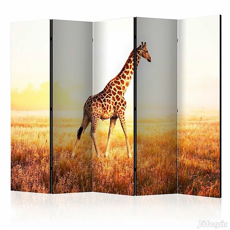A "Sétáló zsiráf II" díszítő paraván egy kivételes része a modern beltereknek. A 5-részes, fából készült és kétoldalúan nyomtatott paraván nemcsak diszkréten elválasztja a teret, de hihetetlen megjelenést is biztosít a beltérnek. A tökéletes kivitelezés és a Full HD minőségű eredeti motívumok azt eredményezik, hogy a szobaparaván mindegyik beltér számára utánozhatatlan csábot biztosít. A beltéri díszparaván minden bizonnyal nagyszerű ötlet a helyiség díszítésére. Érdemes megemlíteni a praktikus alkalmazásukat is - a szobaparavánok használhatók pl. a kiteregetett ruhák eltakarására. Nagyon eredeti díszítőelem, mely mind lakásban, mind irodákban egyaránt használható, pl: fodrászszalonban, orvosi rendelőben vagy akár könyvelői irodában is.
