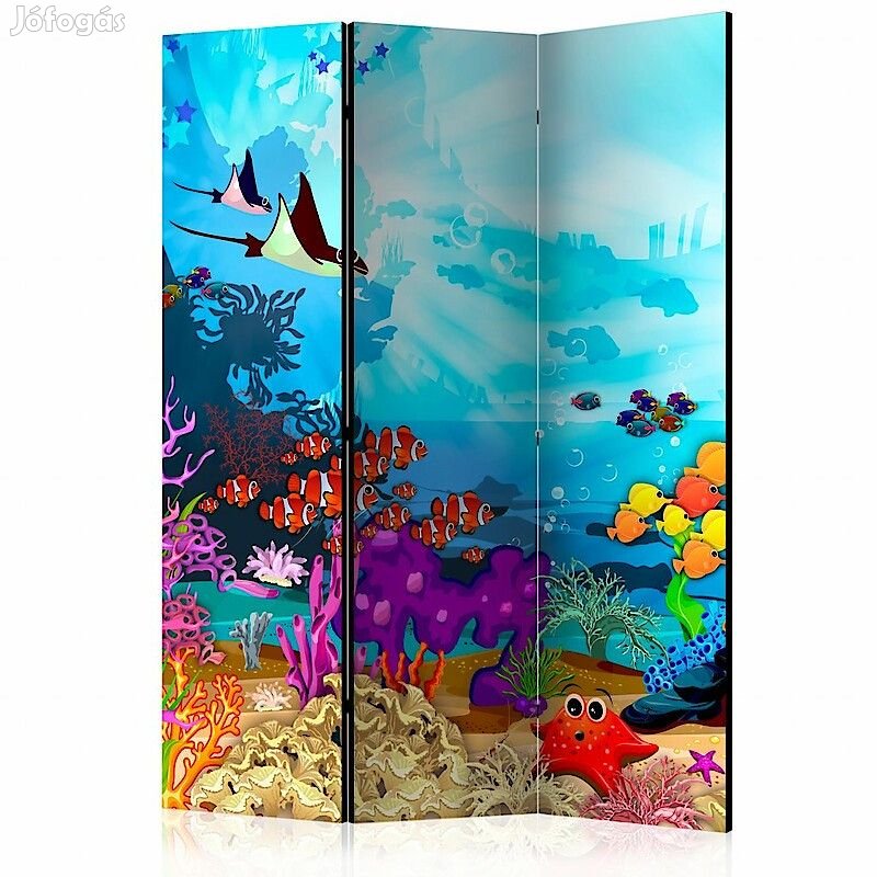 A "Színes halak" díszítő paraván egy kivételes része a modern beltereknek. A 3-részes, fából készült és kétoldalúan nyomtatott paraván nemcsak diszkréten elválasztja a teret, de hihetetlen megjelenést is biztosít a beltérnek. A tökéletes kivitelezés és a Full HD minőségű eredeti motívumok azt eredményezik, hogy a szobaparaván mindegyik beltér számára utánozhatatlan csábot biztosít. A beltéri díszparaván minden bizonnyal nagyszerű ötlet a helyiség díszítésére. Érdemes megemlíteni a praktikus alkalmazásukat is - a szobaparavánok használhatók pl. a kiteregetett ruhák eltakarására. Nagyon eredeti díszítőelem, mely mind lakásban, mind irodákban egyaránt használható, pl: fodrászszalonban, orvosi rendelőben vagy akár könyvelői irodában is.