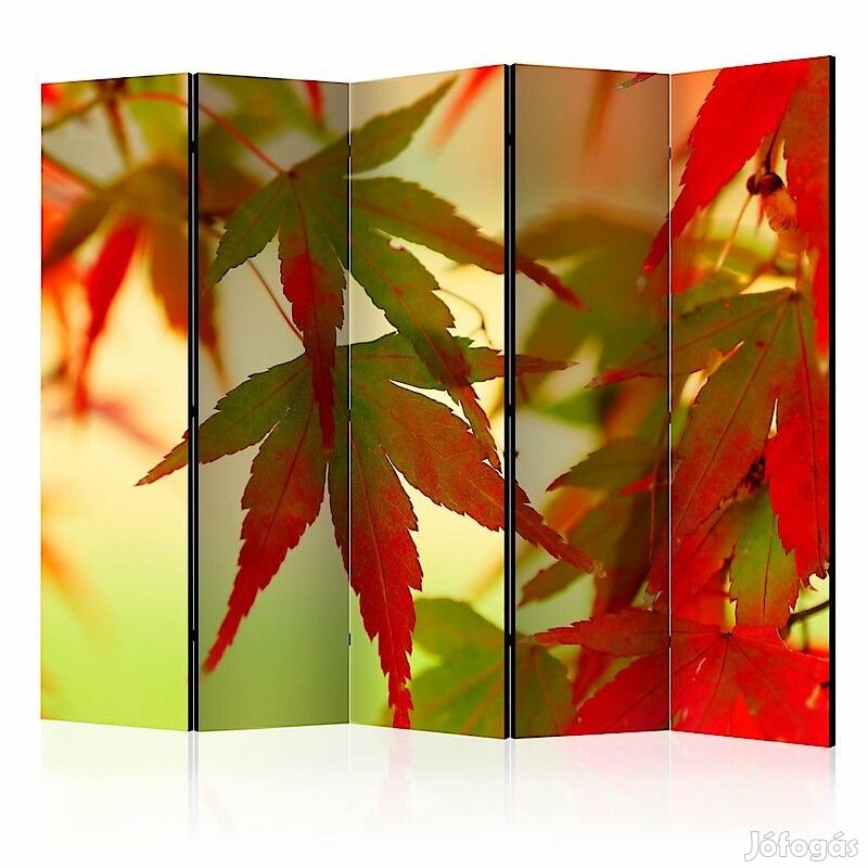 A "Színes levelek II" díszítő paraván egy kivételes része a modern beltereknek. A 5-részes, fából készült és kétoldalúan nyomtatott paraván nemcsak diszkréten elválasztja a teret, de hihetetlen megjelenést is biztosít a beltérnek. A tökéletes kivitelezés és a Full HD minőségű eredeti motívumok azt eredményezik, hogy a szobaparaván mindegyik beltér számára utánozhatatlan csábot biztosít. A beltéri díszparaván minden bizonnyal nagyszerű ötlet a helyiség díszítésére. Érdemes megemlíteni a praktikus alkalmazásukat is - a szobaparavánok használhatók pl. a kiteregetett ruhák eltakarására. Nagyon eredeti díszítőelem, mely mind lakásban, mind irodákban egyaránt használható, pl: fodrászszalonban, orvosi rendelőben vagy akár könyvelői irodában is.