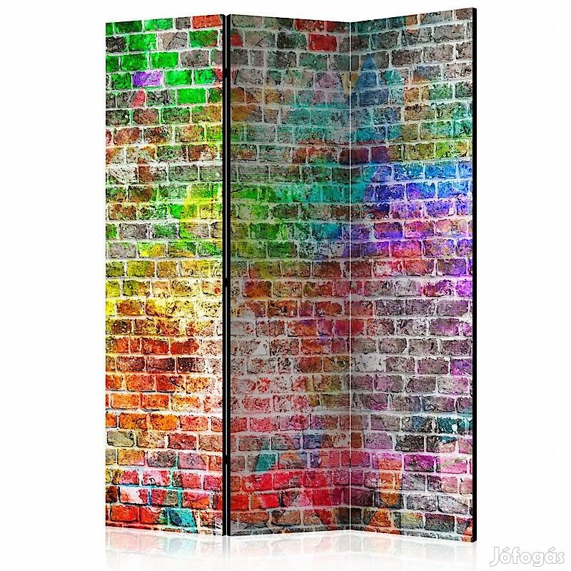 A "Szivárványos téglafal" díszítő paraván egy kivételes része a modern beltereknek. A 3-részes, fából készült és kétoldalúan nyomtatott paraván nemcsak diszkréten elválasztja a teret, de hihetetlen megjelenést is biztosít a beltérnek. A tökéletes kivitelezés és a Full HD minőségű eredeti motívumok azt eredményezik, hogy a szobaparaván mindegyik beltér számára utánozhatatlan csábot biztosít. A beltéri díszparaván minden bizonnyal nagyszerű ötlet a helyiség díszítésére. Érdemes megemlíteni a praktikus alkalmazásukat is - a szobaparavánok használhatók pl. a kiteregetett ruhák eltakarására. Nagyon eredeti díszítőelem, mely mind lakásban, mind irodákban egyaránt használható, pl: fodrászszalonban, orvosi rendelőben vagy akár könyvelői irodában is.