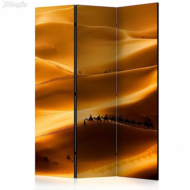 A "Teve karaván" díszítő paraván egy kivételes része a modern beltereknek. A 3-részes, fából készült és kétoldalúan nyomtatott paraván nemcsak diszkréten elválasztja a teret, de hihetetlen megjelenést is biztosít a beltérnek. A tökéletes kivitelezés és a Full HD minőségű eredeti motívumok azt eredményezik, hogy a szobaparaván mindegyik beltér számára utánozhatatlan csábot biztosít. A beltéri díszparaván minden bizonnyal nagyszerű ötlet a helyiség díszítésére. Érdemes megemlíteni a praktikus alkalmazásukat is - a szobaparavánok használhatók pl. a kiteregetett ruhák eltakarására. Nagyon eredeti díszítőelem, mely mind lakásban, mind irodákban egyaránt használható, pl: fodrászszalonban, orvosi rendelőben vagy akár könyvelői irodában is.