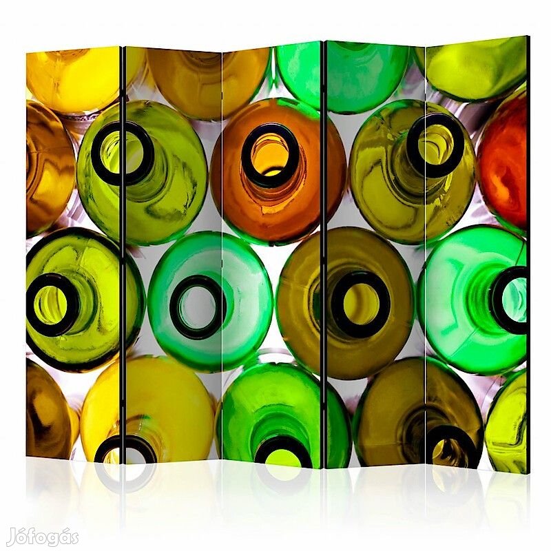 Az "Üvegek II" díszítő paraván egy kivételes része a modern beltereknek. A 5-részes, fából készült és kétoldalúan nyomtatott paraván nemcsak diszkréten elválasztja a teret, de hihetetlen megjelenést is biztosít a beltérnek. A tökéletes kivitelezés és a Full HD minőségű eredeti motívumok azt eredményezik, hogy a szobaparaván mindegyik beltér számára utánozhatatlan csábot biztosít. A beltéri díszparaván minden bizonnyal nagyszerű ötlet a helyiség díszítésére. Érdemes megemlíteni a praktikus alkalmazásukat is - a szobaparavánok használhatók pl. a kiteregetett ruhák eltakarására. Nagyon eredeti díszítőelem, mely mind lakásban, mind irodákban egyaránt használható, pl: fodrászszalonban, orvosi rendelőben vagy akár könyvelői irodában is.