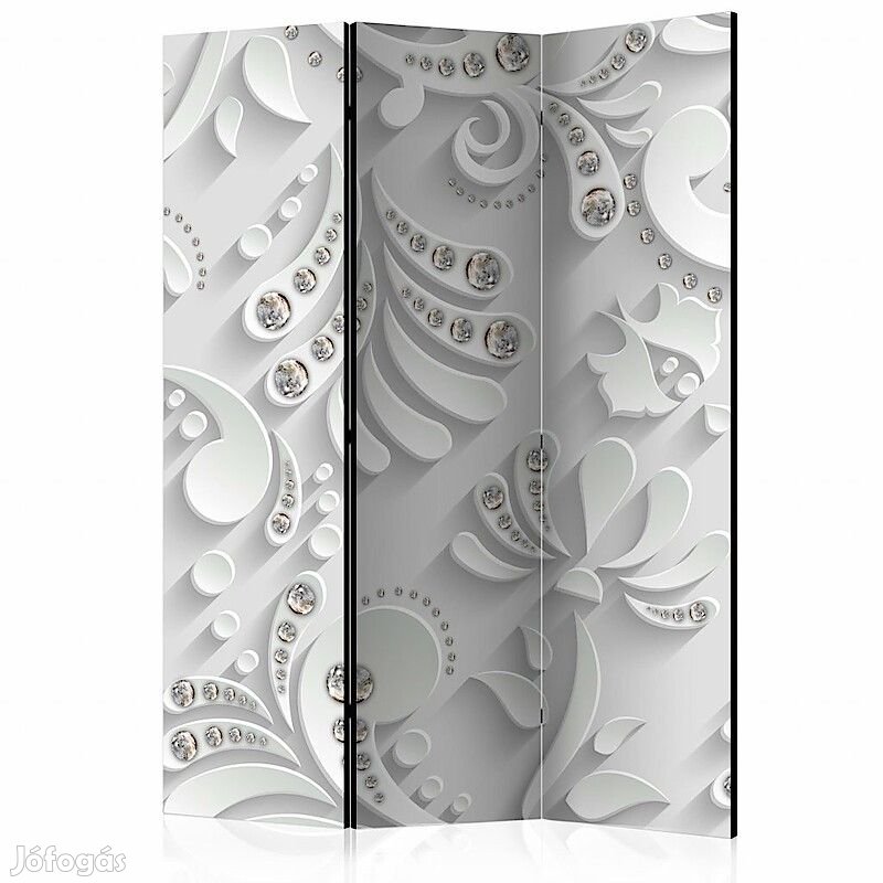 A "Virágok kristályokkal" díszítő paraván egy kivételes része a modern beltereknek. A 3-részes, fából készült és kétoldalúan nyomtatott paraván nemcsak diszkréten elválasztja a teret, de hihetetlen megjelenést is biztosít a beltérnek. A tökéletes kivitelezés és a Full HD minőségű eredeti motívumok azt eredményezik, hogy a szobaparaván mindegyik beltér számára utánozhatatlan csábot biztosít. A beltéri díszparaván minden bizonnyal nagyszerű ötlet a helyiség díszítésére. Érdemes megemlíteni a praktikus alkalmazásukat is - a szobaparavánok használhatók pl. a kiteregetett ruhák eltakarására. Nagyon eredeti díszítőelem, mely mind lakásban, mind irodákban egyaránt használható, pl: fodrászszalonban, orvosi rendelőben vagy akár könyvelői irodában is.