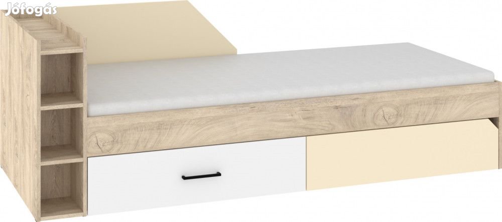 Balos ágykeret polcos fejtámlával, háttámlával, ágyráccsal, és 2 kihúzható ágyneműtartó fiókkal, matrac nélkül, endgrain tölgy, fehér és krém színben. További információkért kattintson ide: