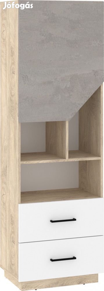 Magas könyvespolc 1 ajtóval, 2 fiókkal és polcokkal, endgrain tölgy, fehér és beton szürke színben. További információkért kattintson ide: