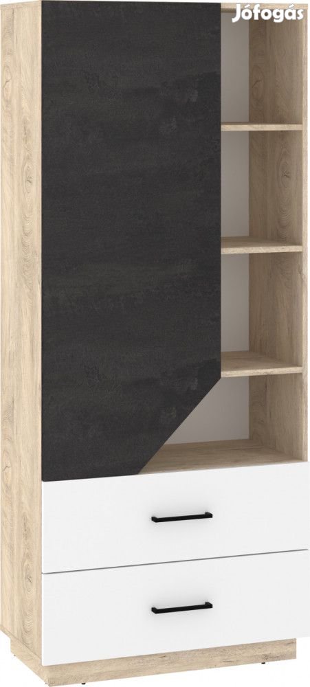 Magas könyvespolc 1 ajtóval, 2 fiókkal és polcokkal, endgrain tölgy, fehér és beton fekete színben. További információkért kattintson ide: