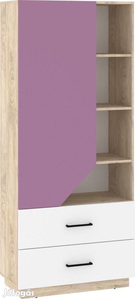 Magas könyvespolc 1 ajtóval, 2 fiókkal és polcokkal, endgrain tölgy, fehér és levendula színben. További információkért kattintson ide: