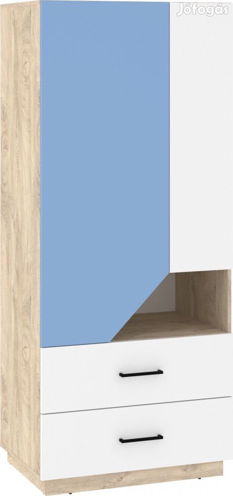 Gardróbszekrény 2 ajtóval, 2 fiókkal, belül akasztórúddal, endgrain tölgy, fehér és világoskék színben. További információkért kattintson ide: