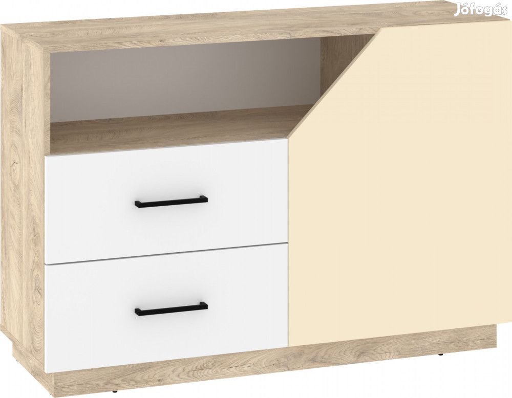 Komód 1 ajtóval, 2 fiókkal, belül polccal és nyitott polccal, endgrain tölgy, fehér és krém színben. További információkért kattintson ide: