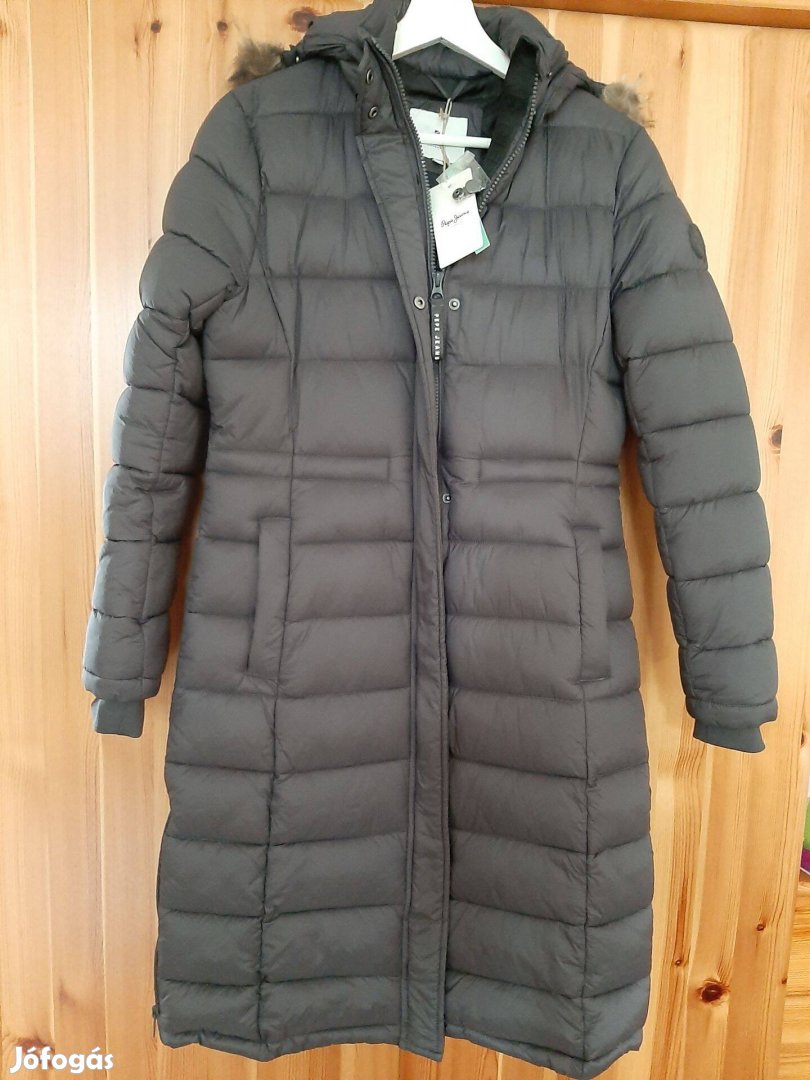 Pepe Jeans női hosszú kabát szürke színben, lecipzározható szőrmés kapucnival, elől cipzáros és patentos záródással, puha bélésű oldalzsebekkel, alul mindkét oldalon felcipzározható, mellrészén filmnyomott, karján szilikonos márkajelzéssel.