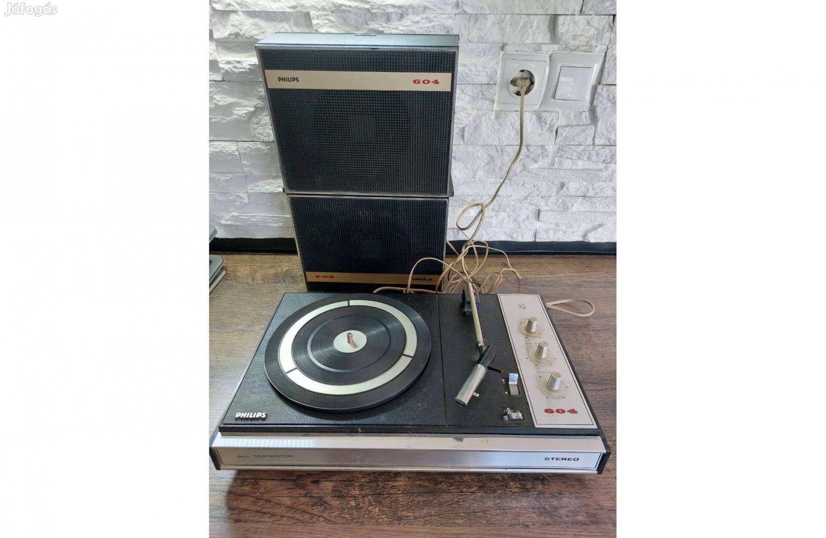 Philips 604 lemezjátszó 2 db hangfallal, tökéletesen működik,