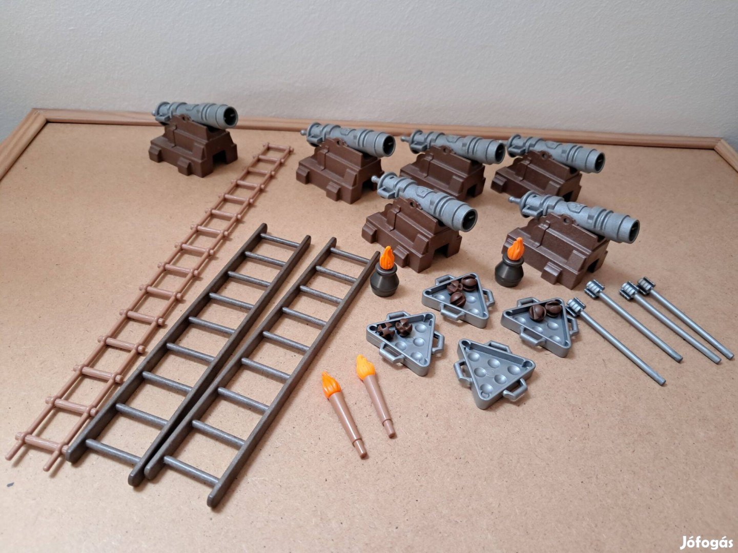 Playmobil működőképes műanyag talpas ágyúk kiegészítőkkel és három létrával eladók.