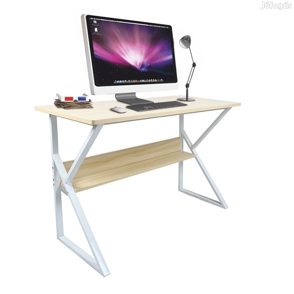 Laminált MDF-ből készült, természetes tölgyfa színváltozatban. A fehér fém kialakítása biztosítja az asztal stabilitását. Az asztallap alatt található egy praktikus polc is.