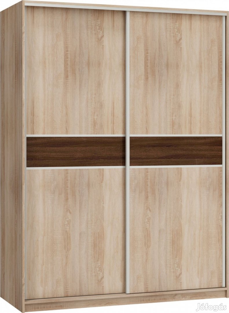 160 cm széles 2-ajtós tolóajtós gardróbszekrény, egyik oldalon alul-felül polccal és akasztórúddal, másik oldalon végig polcokkal, világos sonoma tölgy és sötét sonoma tölgy színben. További információkért kattintson ide: