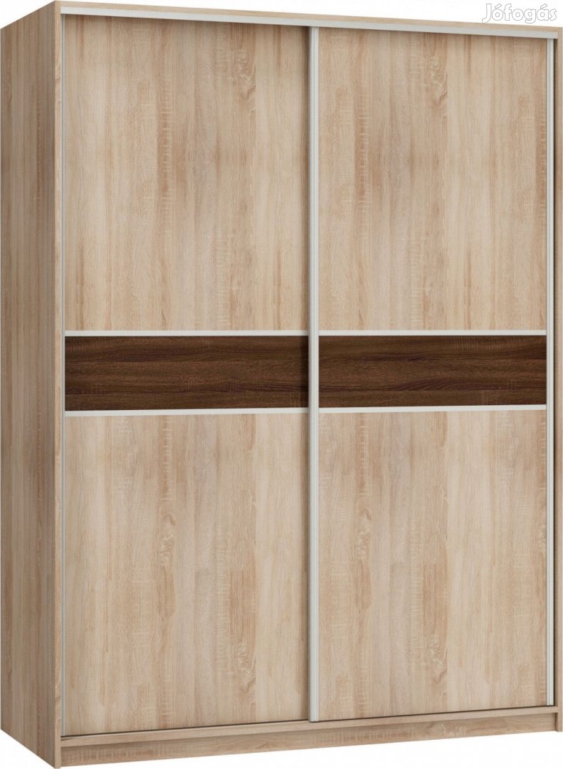 160 cm széles 2-ajtós tolóajtós gardróbszekrény, egyik oldalon felül polccal, alatta két akasztórúddal, másik oldalon végig polcokkal, világos sonoma tölgy és sötét sonoma tölgy színben. További információkért kattintson ide: