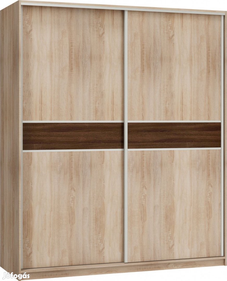 180 cm széles 2-ajtós tolóajtós gardróbszekrény, egyik oldalon felül polccal, alatta két akasztórúddal, másik oldalon végig polcokkal, világos sonoma tölgy és sötét sonoma tölgy színben. További információkért kattintson ide: