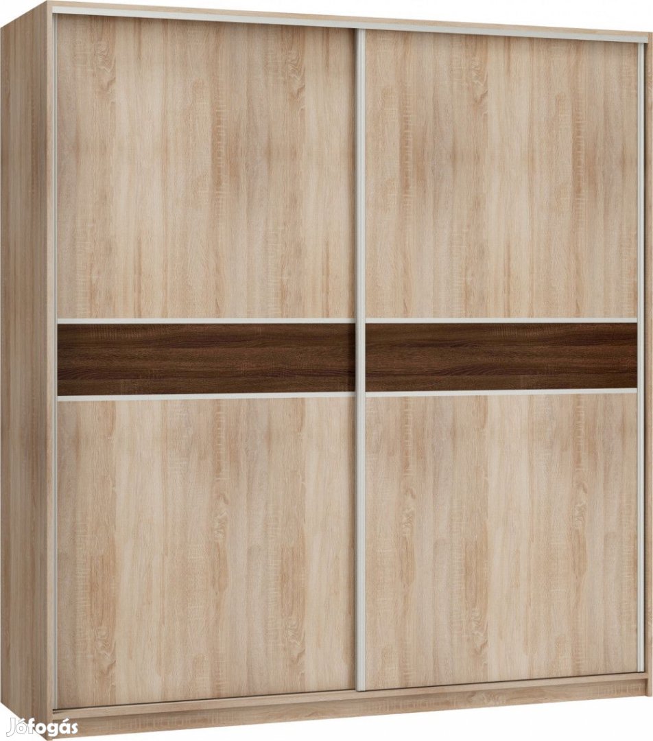 200 cm széles 2-ajtós tolóajtós gardróbszekrény, egyik oldalon alul-felül polccal és akasztórúddal, másik oldalon végig polcokkal, világos sonoma tölgy és sötét sonoma tölgy színben. További információkért kattintson ide: