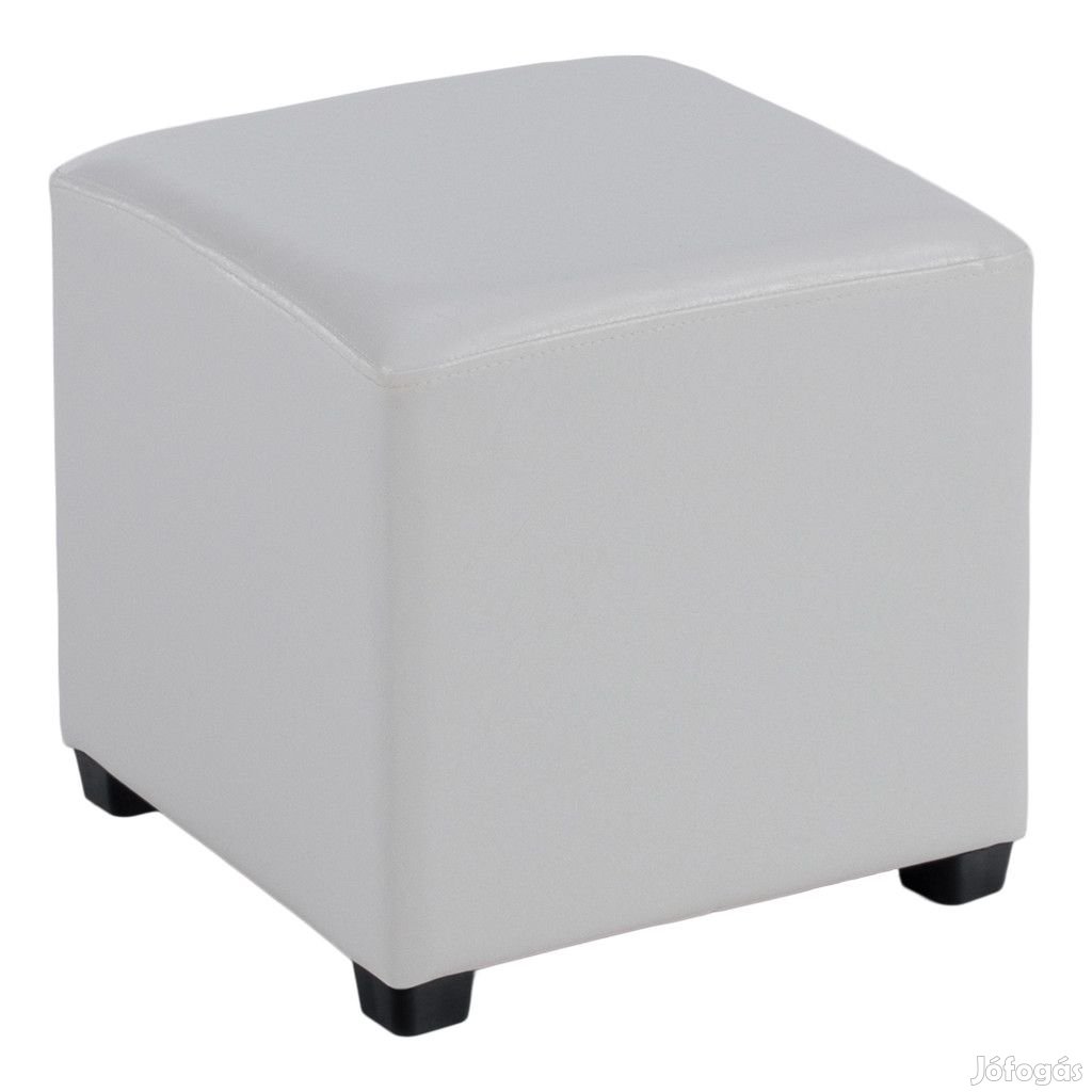 A puff fehér színű textilbőrből készült. Lábakon áll, amelyek kímélik a padlót.