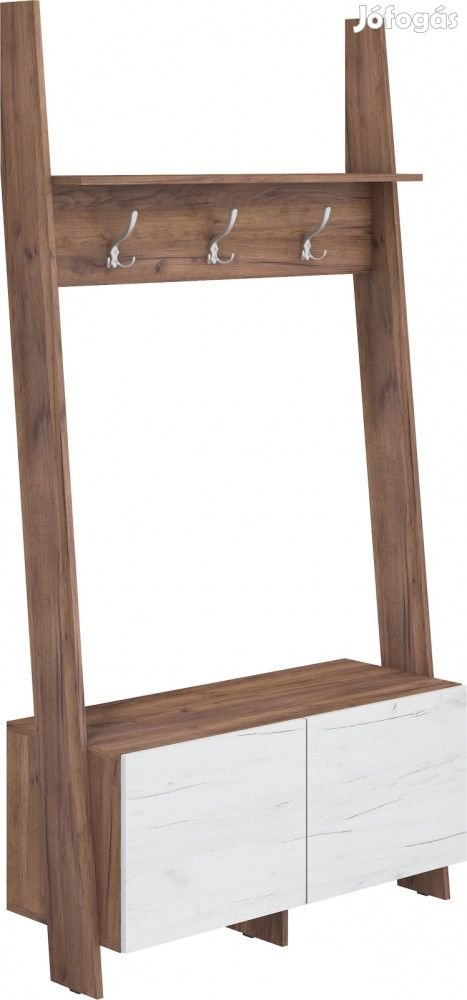 Létravázas könyvespolc alul 2-ajtós komóddal, felül ruhaakasztókkal és kalaptartó polccal, tobacco tölgy és fehér tölgy színben. További információkért kattintson ide: