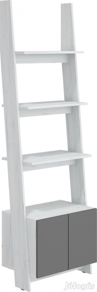 Létravázas könyvespolc alul 2-ajtós komóddal és nyitott polcokkal fehér tölgy és szürke színben. További információkért kattintson ide: