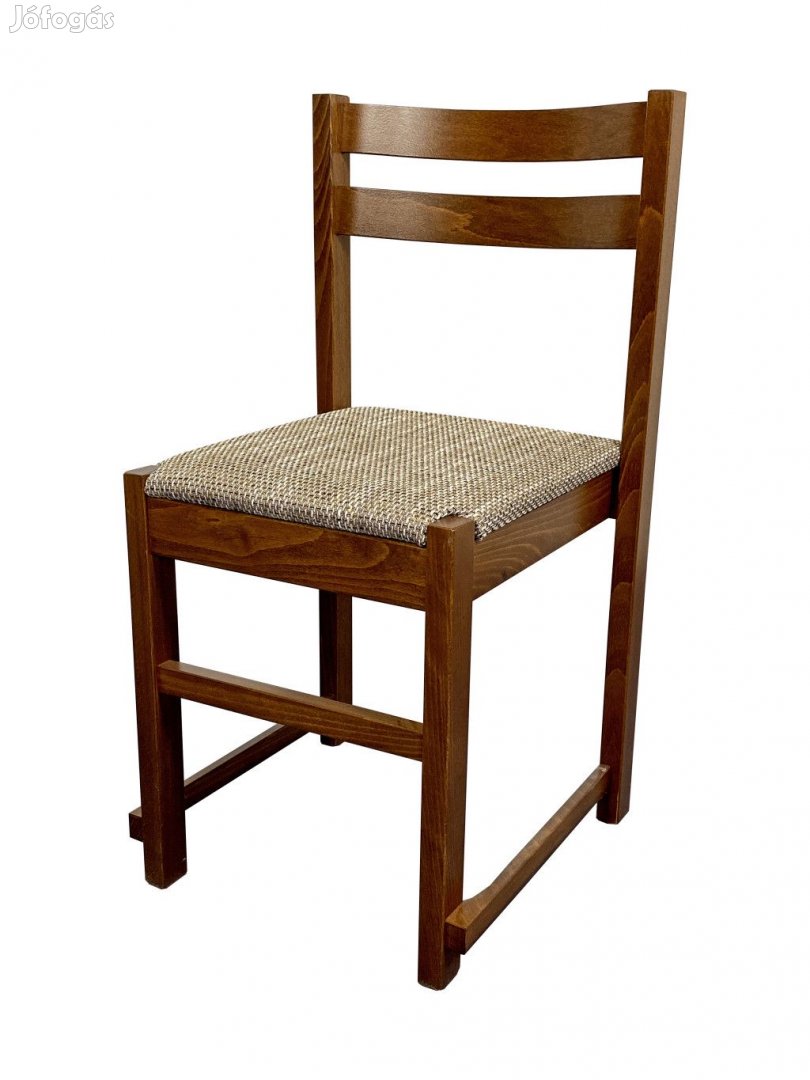 Szövet kárpitozású üléssel, és pácolt, lakkozott bükkfa vázzal illetve lábakkal készített favázas szék.