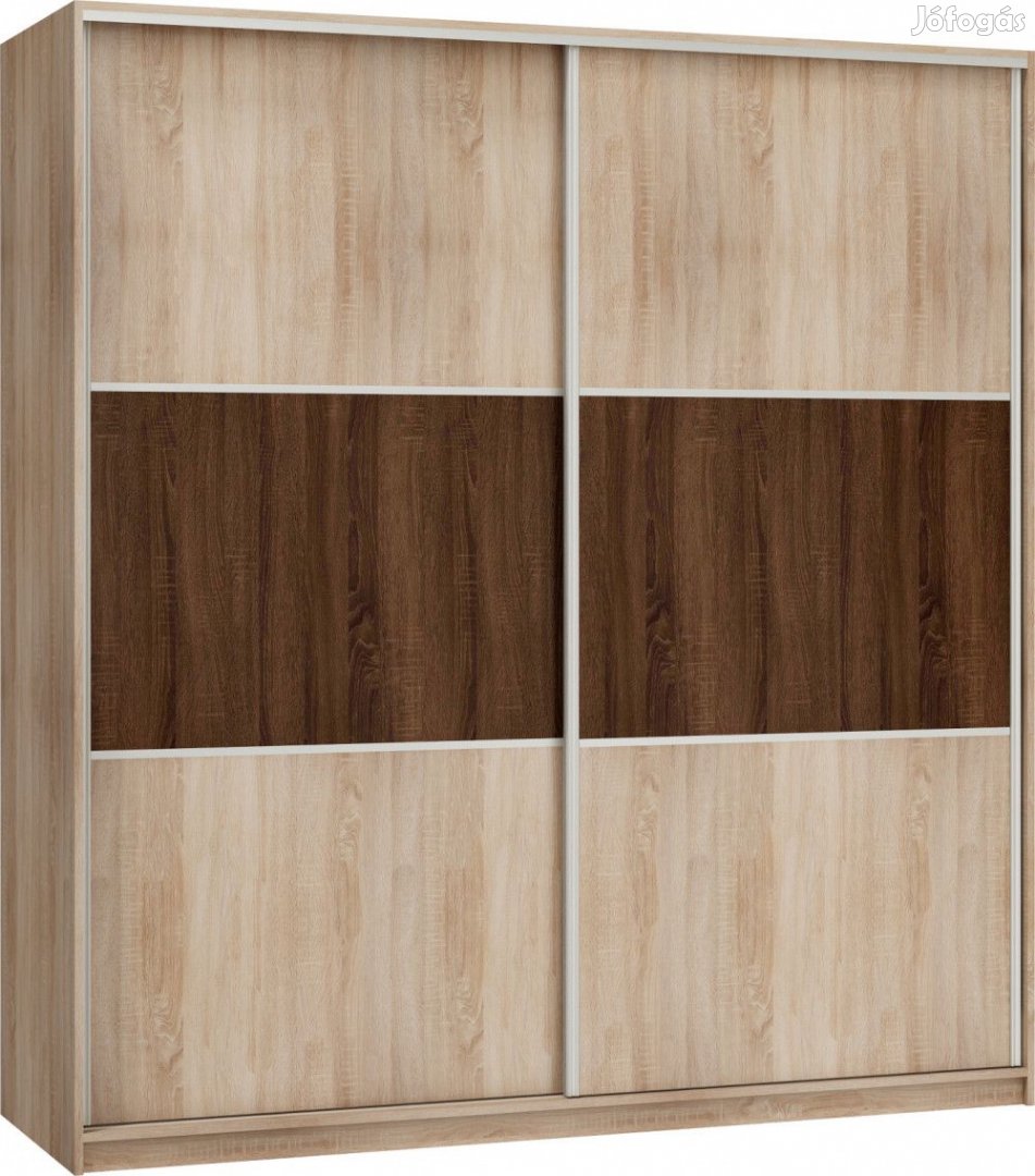 200 cm széles 2-ajtós tolóajtós gardróbszekrény, egyik oldalon felül polccal, alatta két akasztórúddal, másik oldalon végig polcokkal, világos sonoma tölgy és sötét sonoma tölgy színben. További információkért kattintson ide: