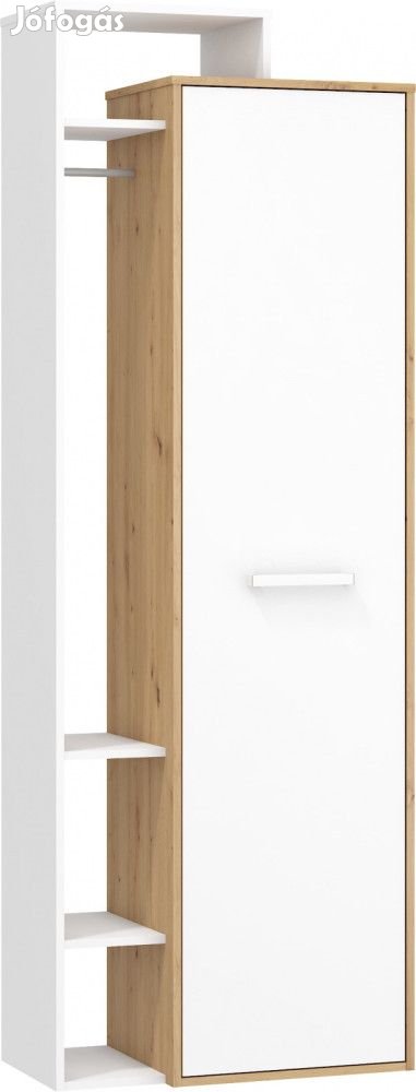 Balos gardróbszekrény 1 ajtóval, az ajtó mögött alul-felül 1-1 polccal, vállfatartóval és nyitott polcokkal, artisan tölgy és fehér színben. További információkért kattintson ide: