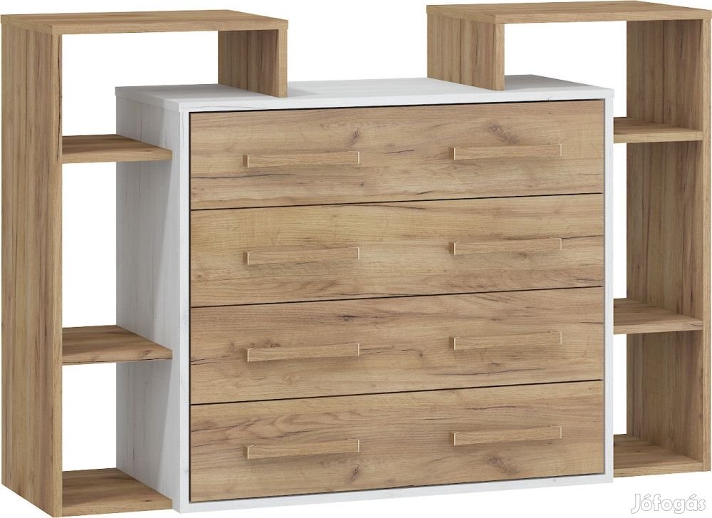 Komód 4 fiókkal és nyitott polcokkal fehér tölgy és arany tölgy színben. További információkért kattintson ide: