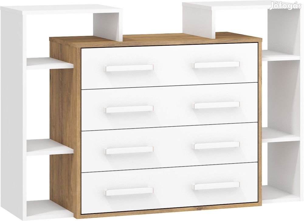 Komód 4 fiókkal és nyitott polcokkal burgundy tölgy és fehér színben. További információkért kattintson ide: