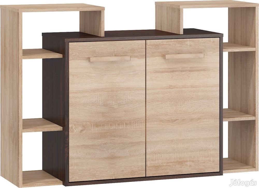 Komód 2 ajtóval, az ajtók mögött polcokkal és nyitott polcokkal, sötét sonoma tölgy és világos sonoma tölgy színben. További információkért kattintson ide: