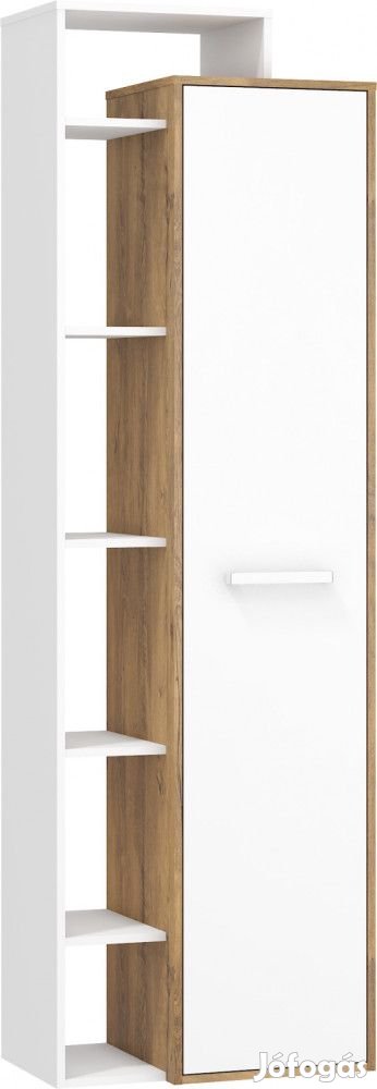 Balos szekrény 1 ajtóval, belül polcokkal és nyitott polcokkal, burgundy tölgy és fehér színben. További információkért kattintson ide:
