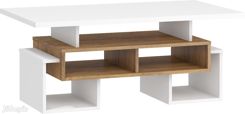 Dohányzóasztal nyitott polcokkal és téglalap alakú szögletes asztallappal, burgundy tölgy és fehér színben. További információkért kattintson ide: