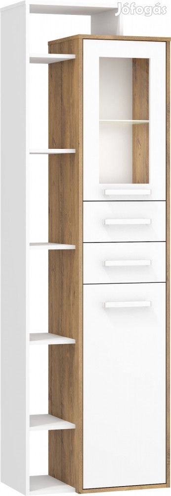 Balos vitrines szekrény felül 1 üvegajtóval és üvegpolcokkal, alul 1 ajtóval, középen 2 fiókkal, burgundy tölgy és fehér színben. További információkért kattintson ide: