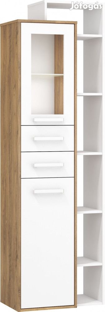 Jobbos vitrines szekrény felül 1 üvegajtóval és üvegpolcokkal, alul 1 ajtóval, középen 2 fiókkal, burgundy tölgy és fehér színben. További információkért kattintson ide: