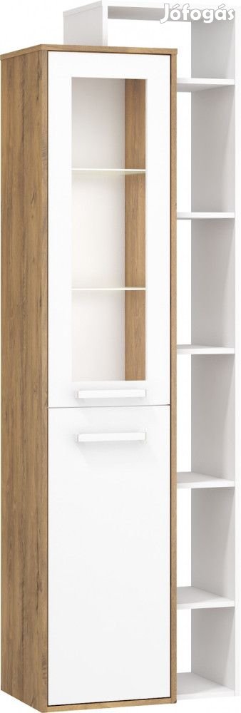 Jobbos vitrines szekrény felül 1 üvegajtóval és üvegpolcokkal, alul 1 ajtóval, burgundy tölgy és fehér színben. További információkért kattintson ide: