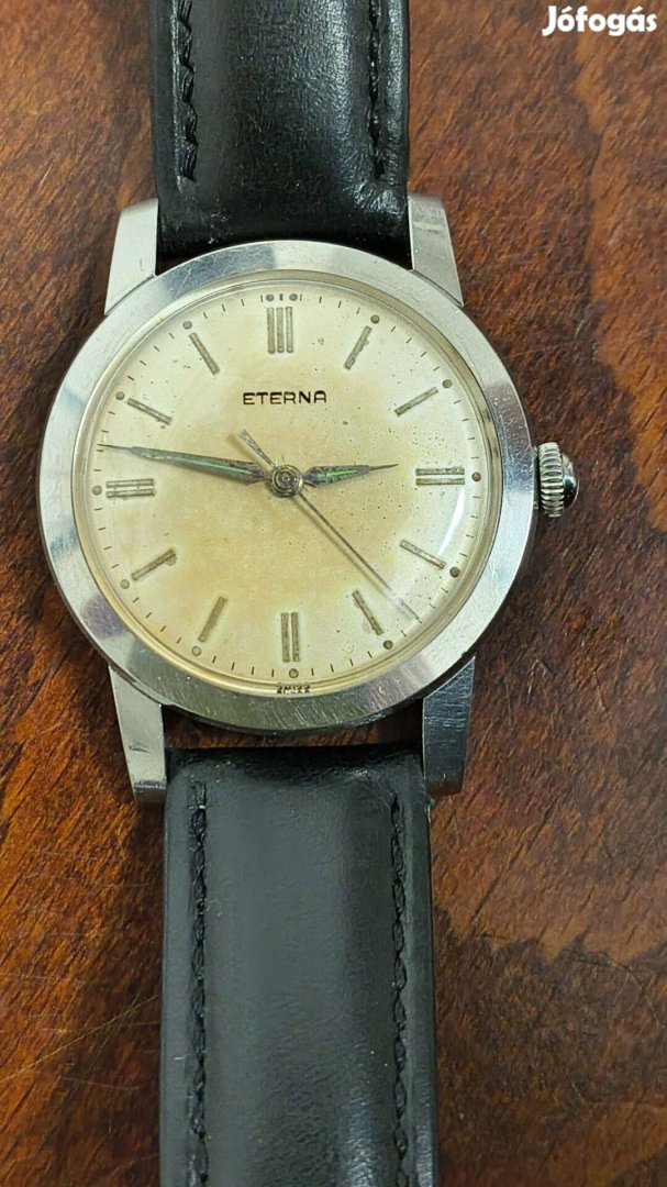 Eladó egy gyűjtői állapotú, 1956-os gyártású Eterna karóra. Jelzett Eterna 1408U, 17 köves, kézi felhúzós. A szerkezet rozsdamentes, kiváló esztétikai állapotban van (lásd a fotót).