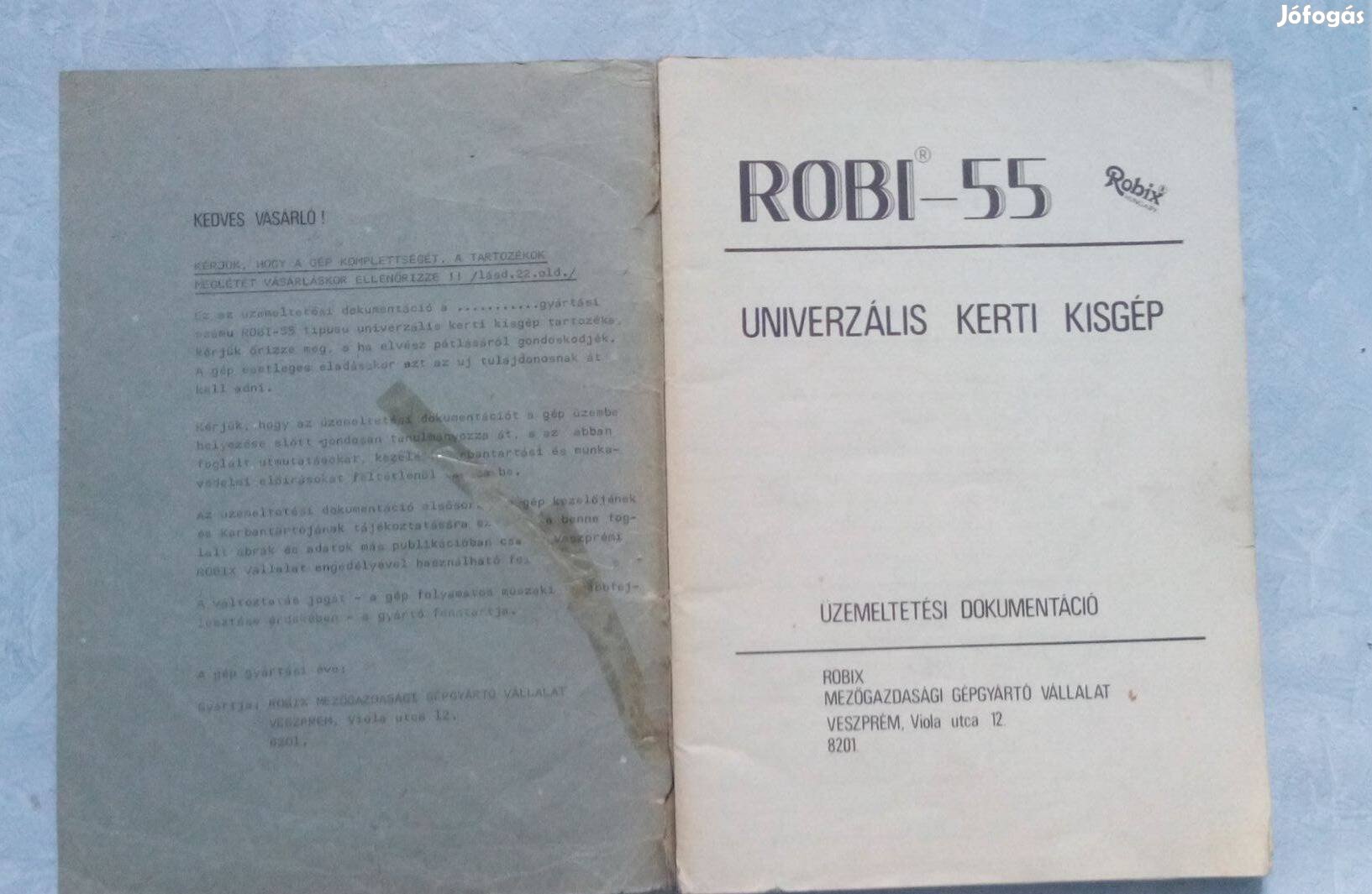 Robi -55 eredeti gépkönyv eladó.