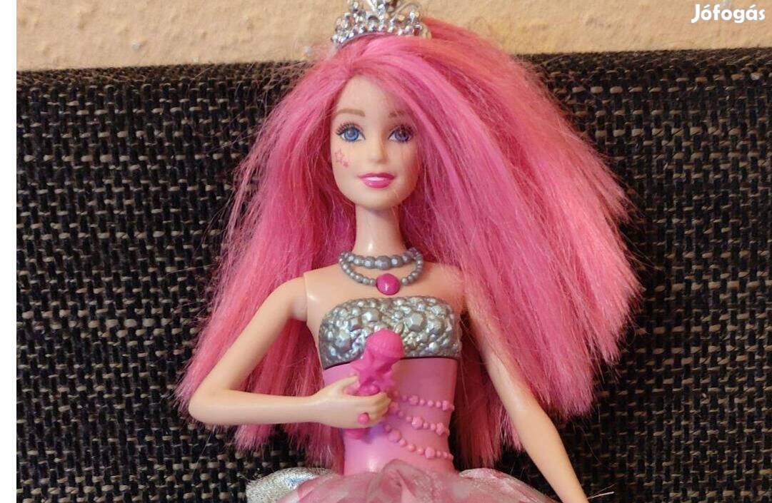 Barbi, a Rocksztár hercegnő, Courtney éneklő hercegnő baba. (Mattel). A képen látható, a szoknyája kicsit elszakadt, ennyi hibája van. Videót tudok küldeni a hangjáról. Veszprémben vehető át vagy postai úton küldöm.