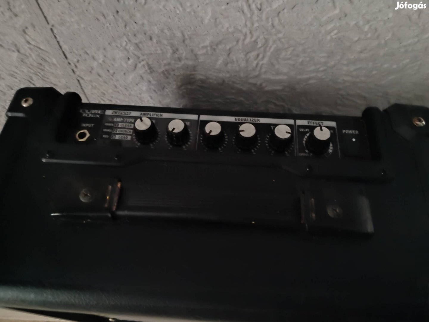Vezérlők: tápkapcsoló, LED indikátoros erősítőtípus kapcsoló, gain, hangerő, mély, közép, magas és effekt