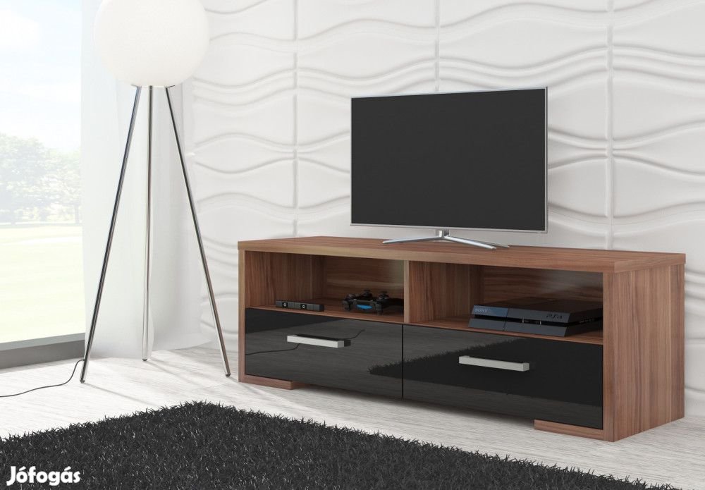 TV-állvány 2 lenyíló ajtóval és nyitott polcokkal szilva és fényes fekete színben. További információkért kattintson ide: