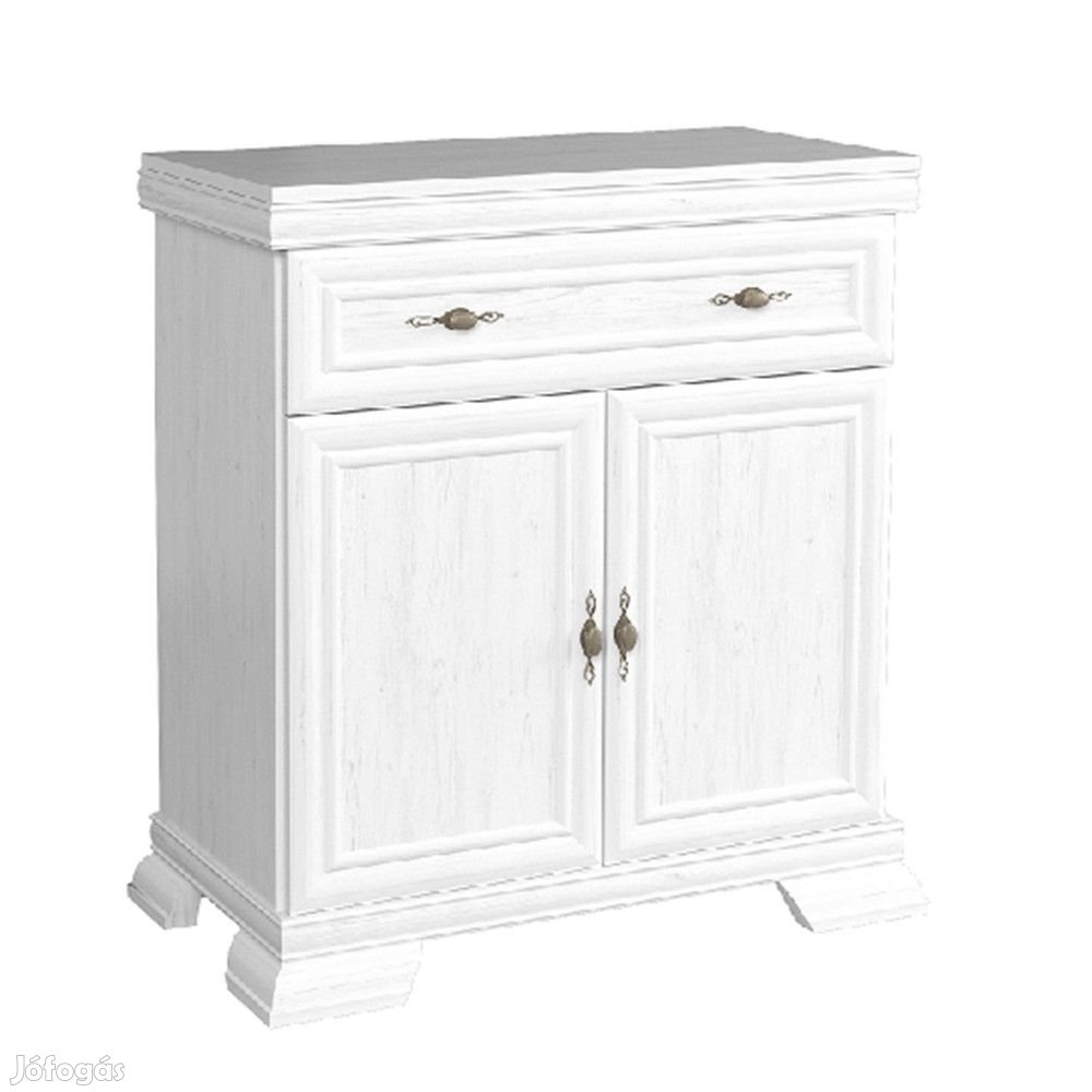Kombinált komód. A szekrény ajtókkal rendelkezik és a fiókja elegendő rakodóteret biztosít. A szekrény egy polccal két rakodótérre van osztva.