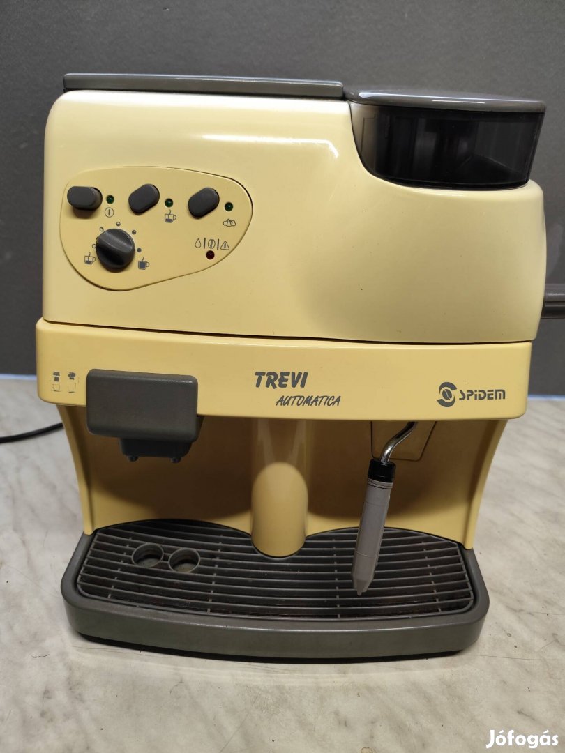 Eladó kivül belül szép állapotú Saeco Spidem Trevi Automata darálos kávégép. Szemes kávé használat meleg víz göz készítés, darálás állitási lehetséges finom krémes erös kavét készít. Teljesen leszervizelve kitakarítva használatra kész állapotban van saját dobozában, J kazános.