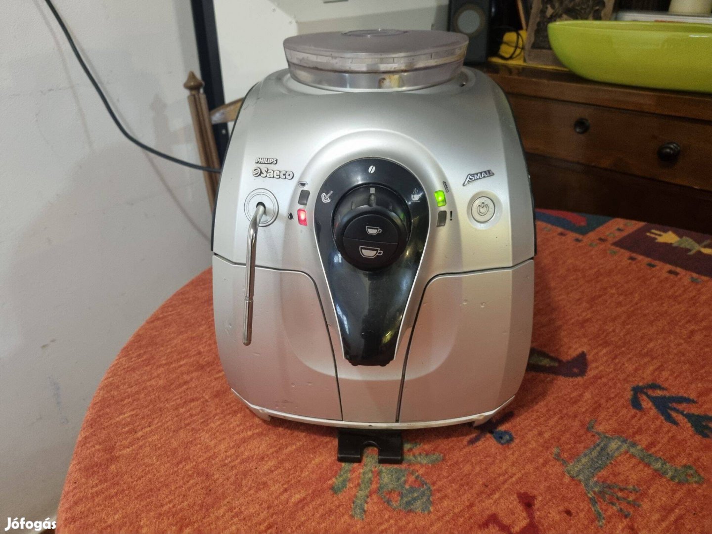 Eladó a képeken látható, Saeco Xsmall hiányos kávégép. A csepegtető tálca hiányzik belőle. Forró vizet a gőzcsapon keresztül ad, de a gép nem öblít, a kávéfőzési folyamat nem indul, jobb oldalt villog a piros LED.