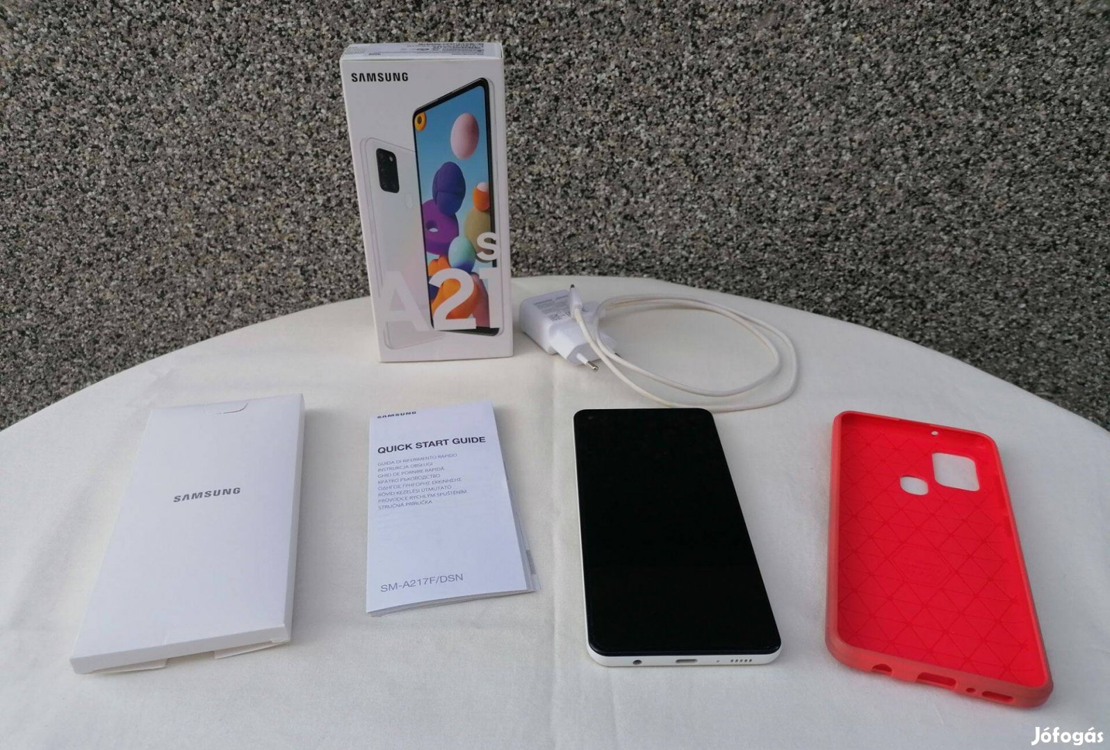 Samsung Galaxy A21s okostelefon, mobil minden tartozékával, megkímélt!