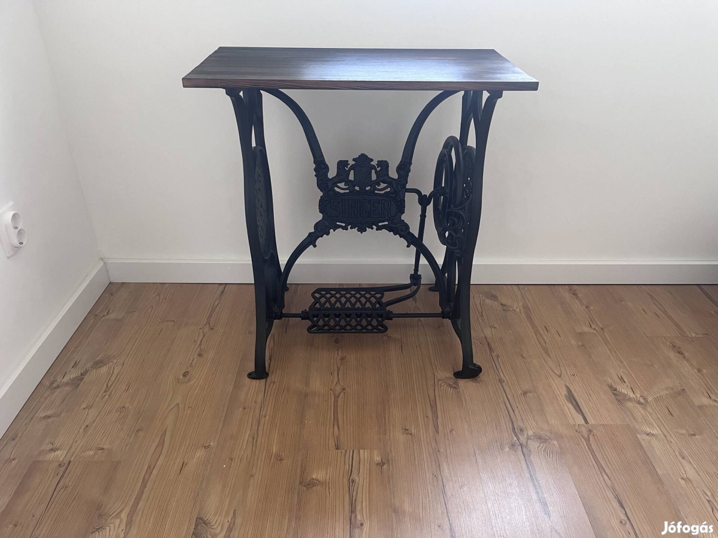 Gyönyörű Singer varrógép asztal, perzselt, olajozott fa asztallappal.